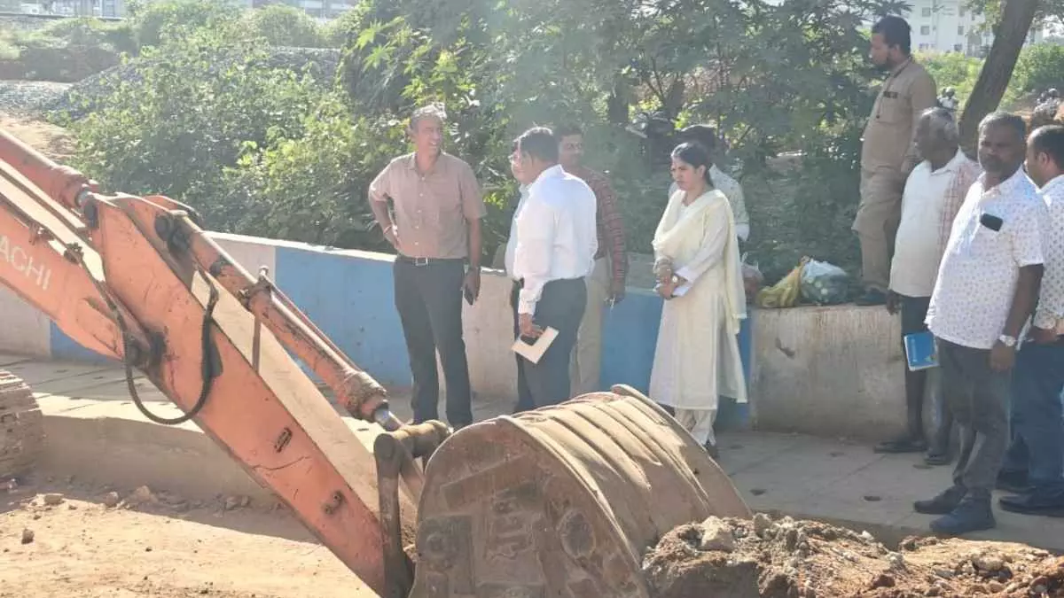 ಜಿಬಿಎ ಆಯುಕ್ತ ಮಹೇಶ್ವರ್ ರಾವ್ ಕಾಮಗಾರಿ ಪರಿಶೀಲನೆ ಮಾಡಿದರು.