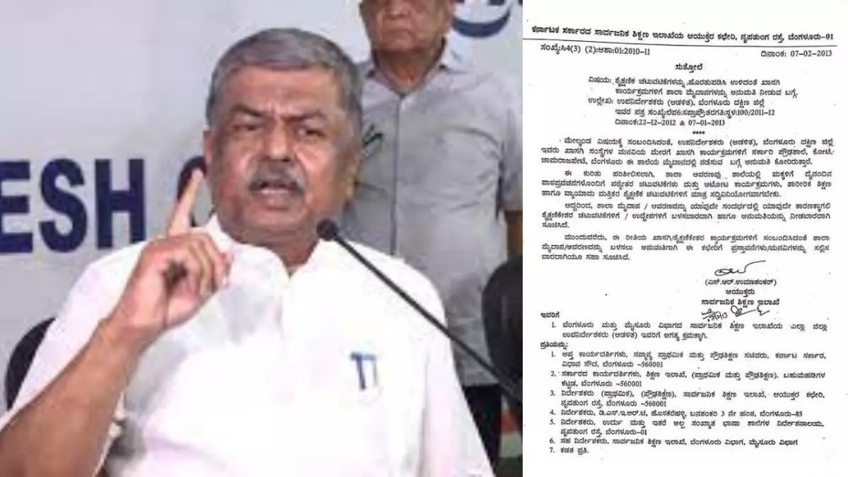 2013ರಲ್ಲಿ ಬಿಜೆಪಿ ಸರ್ಕಾರದ ಅವಧಿಯಲ್ಲಿ, ಚಾಮರಾಜಪೇಟೆಯ ಕೋಟೆ ಸರ್ಕಾರಿ ಪ್ರೌಢಶಾಲೆಯ ಮೈದಾನವನ್ನು ಖಾಸಗಿ ಕಾರ್ಯಕ್ರಮಗಳಿಗೆ ನೀಡುವಂತೆ ಮನವಿ ಬಂದಿತ್ತು. ಆಗ ಸಾರ್ವಜನಿಕ ಶಿಕ್ಷಣ ಇಲಾಖೆಯ ಆಯುಕ್ತರು, "ಶಾಲಾ ಆವರಣವು ಮಕ್ಕಳ ಶೈಕ್ಷಣಿಕ ಮತ್ತು ಪಠ್ಯೇತರ ಚಟುವಟಿಕೆಗಳಿಗೆ ಮಾತ್ರ ಮೀಸಲಾಗಿರಬೇಕು. ಯಾವುದೇ ಕಾರಣಕ್ಕೂ ಶಾಲಾ ಆವರಣವನ್ನು ಶೈಕ್ಷಣಿಕೇತರ ಚಟುವಟಿಕೆಗಳಿಗೆ ಬಳಸಬಾರದು ಮತ್ತು ಅಂತಹ ಕಾರ್ಯಕ್ರಮಗಳಿಗೆ ಅನುಮತಿ ನೀಡಬಾರದು" ಎಂದು ಸ್ಪಷ್ಟ ಆದೇಶ ಹೊರಡಿಸಿದ್ದರು. ಇದೇ ಆದೇಶವನ್ನು ಮುಂದಿಟ್ಟುಕೊಂಡು ಕಾಂಗ್ರೆಸ್ ನಾಯಕರು ಇದೀಗ ಬಿಜೆಪಿಯನ್ನು ಇಕ್ಕಟ್ಟಿಗೆ ಸಿಲುಕಿಸಿದ್ದಾರೆ.