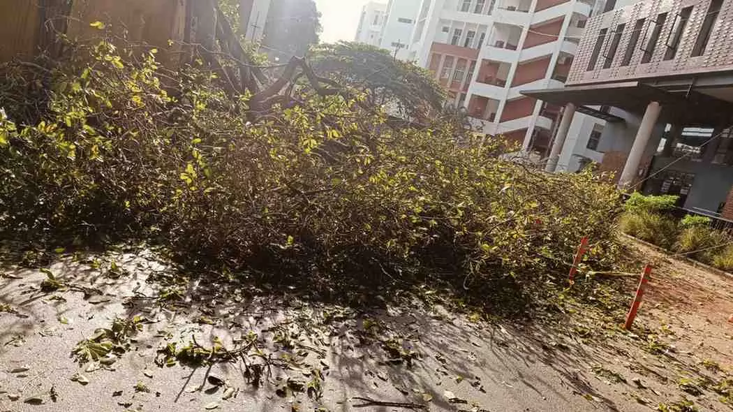ರಾತ್ರಿ ಸುರಿದ ಮಳೆಗೆ ಅಲಿ ಆಸ್ಗರ್ ರಸ್ತೆಯ ಪೊಲೀಸ್ ಕಮಿಷನರ್ ಕಚೇರಿ ಹಿಂದಿನ ಗೇಟ್ ಬಳಿ ಬೆಳಿಗ್ಗೆ 7.30ರ ವೇಳೆಗೆ ಬೃಹತ್ ಮರದ ಕೊಂಬೆ ಏಕಾಏಕಿ ರಸ್ತೆಗೆ ಉರುಳಿ ಬಿದ್ದ ಘಟನೆ ನಡೆದಿದೆ. ಟ್ರಾಫಿಕ್ ಪೊಲೀಸ್, ಸೆಕ್ಯೂರಿಟಿ ಗಾರ್ಡ್ ಮತ್ತು ಬಿಬಿಎಂಪಿ ಸಿಬ್ಬಂದಿ ಕೂದಲೆಳೆ ಅಂತರದಲ್ಲಿ ಪಾರಾಗಿದ್ದಾರೆ. ಆ ಮೂಲಕ ಅದೃಷ್ಟವಶಾತ್ ಭಾರೀ ಅನಾಹುತವೊಂದು ತಪ್ಪಿದೆ.
