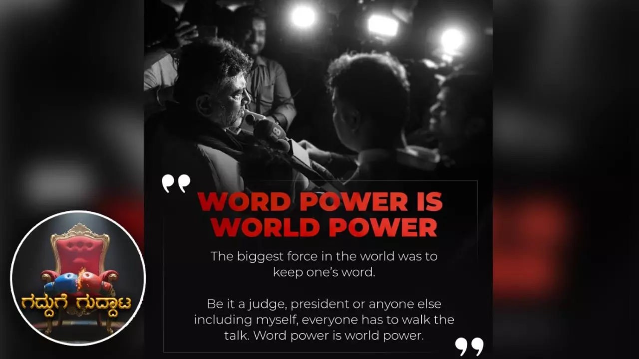 "ಕೊಟ್ಟ ಮಾತು ಉಳಿಸಿಕೊಳ್ಳುವುದೇ ವಿಶ್ವದಲ್ಲಿರುವ ದೊಡ್ಡ ಶಕ್ತಿ" ಎಂದು ತಮ್ಮ ಎಕ್ಸ್ ಖಾತೆಯಲ್ಲಿ ಪೋಸ್ಟ್ ಮಾಡುವ ಮೂಲಕ ಕೊಟ್ಟ ಮಾತಿನಂತೆ ನಡೆಯಿರಿ ಎಂಬ ಪಕ್ಷದ ನಾಯಕರನ್ನು ಆಗ್ರಹಿಸಿದ್ದಾರೆ. ಅಧಿಕಾರ ಹಂಚಿಕೆ ಒಪ್ಪಂದದ ಚರ್ಚೆಗಳು ಹಾಗೂ ನಾಯಕತ್ವ ಬದಲಾವಣೆ ಗೊಂದಲಗಳ ನಡುವೆ ಡಿಸಿಎಂ ಡಿ.ಕೆ. ಶಿವಕುಮಾರ್ ಅವರ ಈ ಹೇಳಿಕೆ ತೀವ್ರ ಕುತೂಹಲ ಮೂಡಿಸಿದೆ.