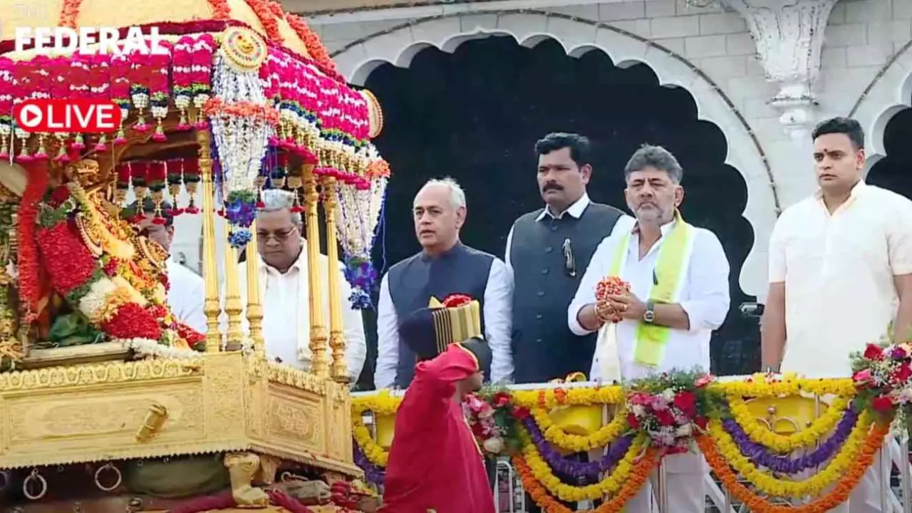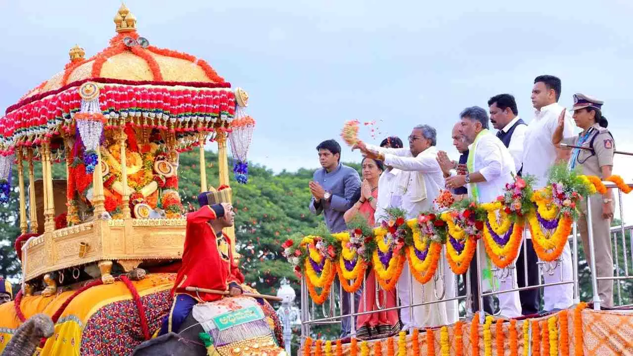 ದಸರಾ ಮೆರವಣಿಗೆ ಆರಂಭದಲ್ಲಿ ಕೋಟೆ ಆಂಜನೇಯ ದೇವಾಲಯದ ಬಳಿ ನಂದಿಧ್ವಜಕ್ಕೆ ಮುಖ್ಯಮಂತ್ರಿ ಸಿದ್ದರಾಮಯ್ಯ ಅವರು ಮಧ್ಯಾಹ್ನ 1.08ಕ್ಕೆ ಪೂಜೆ ನೆರವೇರಿಸಿದರು. ಮೆರವಣಿಗೆಗೆ ಚಾಲನೆ ದೊರೆಯುತ್ತಿದ್ದಂತೆ ಸಾವಿರಾರು ಕಲಾವಿದರು ತಮ್ಮ ಜಿಲ್ಲೆಗಳ ಸಾಂಸ್ಕೃತಿಕ ವೈಶಿಷ್ಟ್ಯತೆಗಳನ್ನು ಪಡಿಮೂಡಿಸಿದರು. ತಾಳ,ಮೇಳ, ಕಂಸಾಳೆ, ತಮಟೆ, ಡೋಲು ಚಂಡೆಗಳ ಮೂಲಕ ಸಾಂಸ್ಕೃತಿಕ ಕಲರವ ಮೆರವಣಿಗೆಗೆ ಮೆರಗು ನೀಡಿತು.