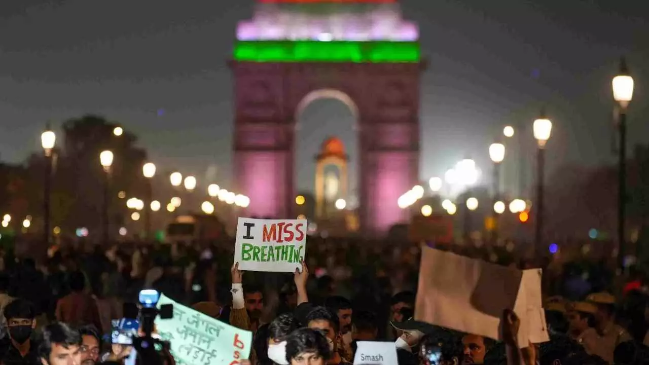 ರಾಷ್ಟ್ರ ರಾಜಧಾನಿ ದೆಹಲಿಯಲ್ಲಿ ವಾಯು ಗುಣಮಟ್ಟ ಸೂಚ್ಯಂಕ (AQI) "ಅತ್ಯಂತ ಕಳಪೆ" ಮಟ್ಟವಾದ 370ಕ್ಕೆ ತಲುಪಿರುವ ಹಿನ್ನೆಲೆಯಲ್ಲಿ, ತುರ್ತು ಕ್ರಮಕ್ಕೆ ಆಗ್ರಹಿಸಿ ನೂರಾರು ನಾಗರಿಕರು, ಮಕ್ಕಳು ಮತ್ತು ಪರಿಸರ ಕಾರ್ಯಕರ್ತರು ಭಾನುವಾರ ಇಂಡಿಯಾ ಗೇಟ್ ಬಳಿ ಶಾಂತಿಯುತ ಪ್ರತಿಭಟನೆ ನಡೆಸಿದರು. ಈ ವೇಳೆ ದೆಹಲಿ ಪೊಲೀಸರು ಹಲವು ಪ್ರತಿಭಟನಾಕಾರರನ್ನು ವಶಕ್ಕೆ ಪಡೆದಿದ್ದು, ಸರ್ಕಾರದ ಕ್ರಮಕ್ಕೆ ವ್ಯಾಪಕ ಆಕ್ರೋಶ ವ್ಯಕ್ತವಾಗಿದೆ.