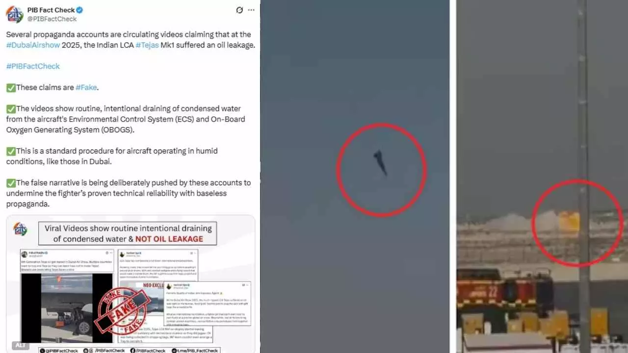 ದುರಂತಕ್ಕೂ ಕೇವಲ ಒಂದು ದಿನ ಮುಂಚೆ, ಸಾಮಾಜಿಕ ಜಾಲತಾಣಗಳಲ್ಲಿ ತೇಜಸ್ ವಿಮಾನದಿಂದ ಆಯಿಲ್ ಲೀಕ್ ಆಗುತ್ತಿದೆ ಎಂಬ ವಿಡಿಯೋಗಳು ಹರಿದಾಡಿದ್ದವು. ಇದನ್ನು ತೀವ್ರವಾಗಿ ಖಂಡಿಸಿದ್ದ ಭಾರತ ಸರ್ಕಾರದ ಪಿಐಬಿ ಫ್ಯಾಕ್ಟ್ ಚೆಕ್ (PIB Fact Check) ಘಟಕ, "ಇದು ತೇವಾಂಶದ ವಾತಾವರಣದಲ್ಲಿ ವಿಮಾನದ ಆಕ್ಸಿಜನ್ ಸಿಸ್ಟಮ್ನಿಂದ ನೀರು ಹೊರಹಾಕುವ ಸಹಜ ಪ್ರಕ್ರಿಯೆ. ಆಯಿಲ್ ಲೀಕ್ ಎಂಬುದು ಸುಳ್ಳು ಸುದ್ದಿ," ಎಂದು ಸ್ಪಷ್ಟಪಡಿಸಿತ್ತು. ಆದರೆ, ಈ ಸ್ಪಷ್ಟನೆ ನೀಡಿದ ಮರುದಿನವೇ ವಿಮಾನ ಪತನಗೊಂಡಿರುವುದು ಹಲವು ಅನುಮಾನಗಳಿಗೆ ಎಡೆಮಾಡಿಕೊಟ್ಟಿದೆ.