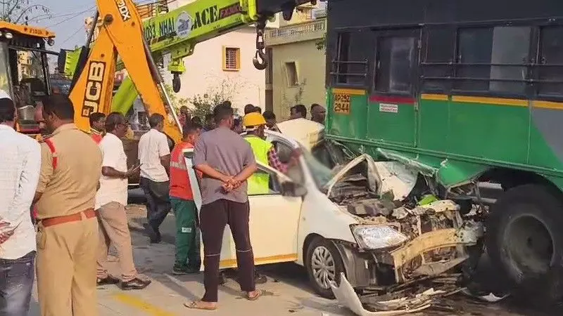 ಪಲಮನೇರ್ನಿಂದ ಚಿತ್ತೂರಿಗೆ ತೆರಳುತ್ತಿದ್ದ ಬಸ್ಸೊಂದು ಹೆದ್ದಾರಿಯ ಬಂಗಾರುಪಾಳ್ಯಂ ಬಳಿ ನಿಂತಿತ್ತು ಎನ್ನಲಾಗಿದೆ. ಇದೇ ಮಾರ್ಗವಾಗಿ ಅತಿ ವೇಗವಾಗಿ ಬಂದ ಕಾರು ನಿಯಂತ್ರಣ ತಪ್ಪಿ, ನಿಂತಿದ್ದ ಬಸ್ಗೆ ಹಿಂಬದಿಯಿಂದ ರಭಸವಾಗಿ ಡಿಕ್ಕಿ ಹೊಡೆದಿದೆ. ಡಿಕ್ಕಿಯ ರಭಸಕ್ಕೆ ಕಾರಿನ ಮುಂಭಾಗ ಸಂಪೂರ್ಣವಾಗಿ ನಜ್ಜುಗುಜ್ಜಾಗಿದ್ದು, ವಾಹನದಲ್ಲಿದ್ದ ದಂಪತಿ ಹಾಗೂ ಮಗು ಸ್ಥಳದಲ್ಲೇ ಕೊನೆಯುಸಿರೆಳೆದಿದ್ದಾರೆ. ಕಾರು ಸಂಪೂರ್ಣವಾಗಿ ಬಸ್ನ ಹಿಂಭಾಗಕ್ಕೆ ಸಿಲುಕಿಕೊಂಡಿದ್ದರಿಂದ, ಪೊಲೀಸರು ಜೆಸಿಬಿ (JCB) ಸಹಾಯದಿಂದ ವಾಹನವನ್ನು ಹೊರತೆಗೆದು ಮೃತದೇಹಗಳನ್ನು ಹೊರತೆಗೆದಿದ್ದಾರೆ.