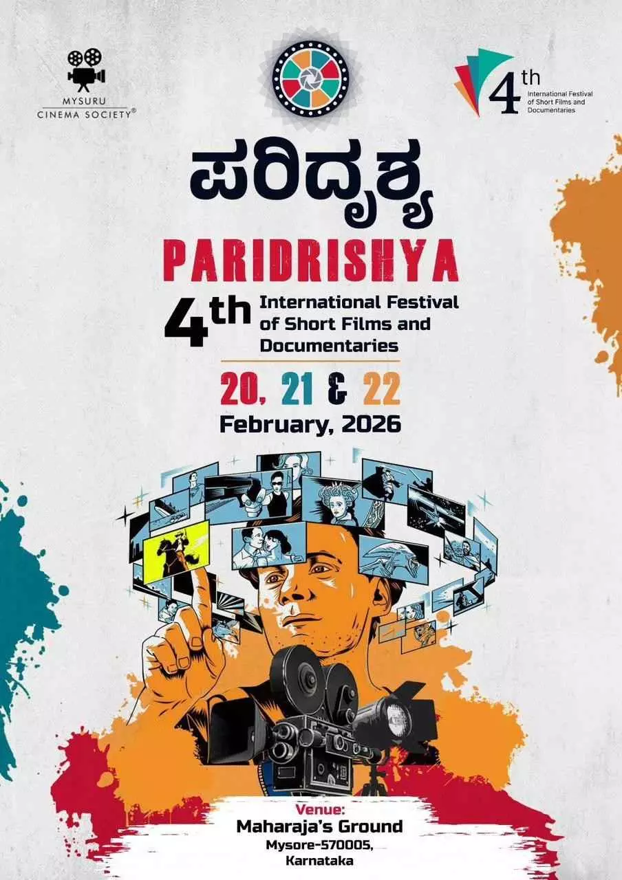 ಜಗತ್ತಿನ ವಿವಿಧ ದೇಶಗಳ ಕಿರುಚಿತ್ರಗಳು ಮತ್ತು ಸಾಕ್ಷ್ಯಚಿತ್ರಗಳನ್ನು ಒಂದೇ ವೇದಿಕೆಯಲ್ಲಿ ಪರಿಚಯಿಸುವ ‘ಪರಿದೃಶ್ಯ–2026’ ಅಂತರರಾಷ್ಟ್ರೀಯ ಚಿತ್ರೋತ್ಸವಕ್ಕೆ ದಸರಾ ನಗರಿ ಮೈಸೂರು ಸಜ್ಜಾಗುತ್ತಿದೆ. ಫೆಬ್ರವರಿ 20ರಿಂದ 22ರವರೆಗೆ ಐತಿಹಾಸಿಕ ಮಹಾರಾಜ ಕಾಲೇಜು ಮೈದಾನದಲ್ಲಿ ಉತ್ಸವ ನಡೆಯಲಿದೆ.