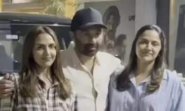 ಮುಂಬೈನಲ್ಲಿ ನಡೆದ 'ಬಾರ್ಡರ್ 2' ವಿಶೇಷ ಪ್ರದರ್ಶನದಲ್ಲಿ ಸನ್ನಿ ಡಿಯೋಲ್ ಅವರು ತಮ್ಮ ಸಹೋದರಿಯರಾದ ಇಶಾ ಮತ್ತು ಅಹಾನಾ ಡಿಯೋಲ್ ಅವರೊಂದಿಗೆ ಸಾರ್ವಜನಿಕವಾಗಿ ಕಾಣಿಸಿಕೊಳ್ಳುವ ಮೂಲಕ ದಶಕಗಳ ಅಂತರವನ್ನು ಅಳಿಸಿಹಾಕಿದ್ದಾರೆ.