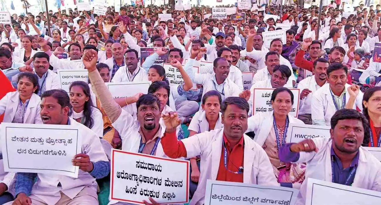 ಆರೋಗ್ಯ ಸೇವೆ ಅಸ್ತವ್ಯಸ್ತ? ವೈದ್ಯರ ಮುಷ್ಕರಕ್ಕೆ ಸಾವಿರಾರು ಎನ್ಎಚ್ಎಂ ನೌಕರರ ಸಾಥ್