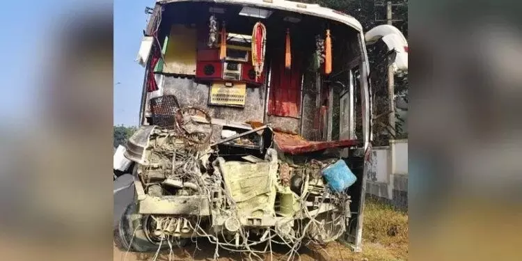 ಲಾರಿ ಹಾಗೂ ಖಾಸಗಿ ಬಸ್ ನಡುವೆ ಭೀಕರ ಅಪಘಾತ; ಚಾಲಕ ಗಂಭೀರ, 20ಕ್ಕೂ ಹೆಚ್ಚು ಪ್ರಯಾಣಿಕರಿಗೆ ಗಾಯ