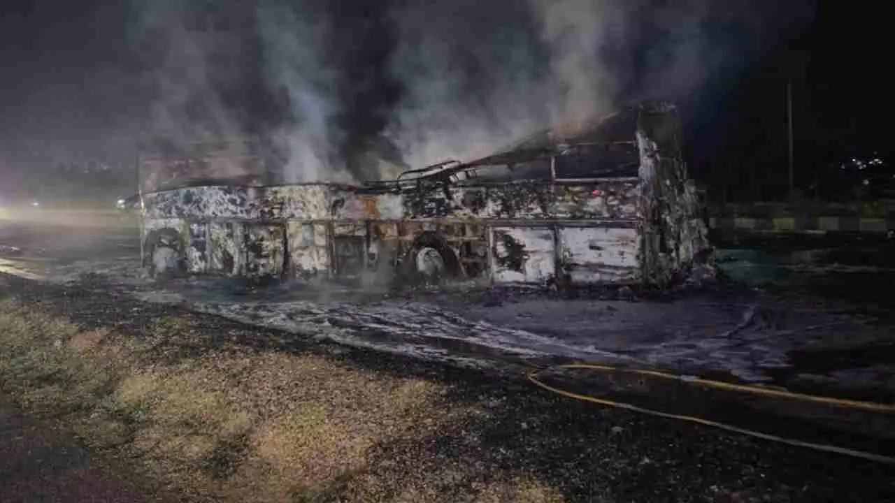 ಬೆಂಗಳೂರಿನಿಂದ ಗೋಕರ್ಣಕ್ಕೆ ತೆರಳುತ್ತಿದ್ದ ಈ ಬಸ್ನಲ್ಲಿ ಒಟ್ಟು 32 ಜನರಿದ್ದರು. ರಾಷ್ಟ್ರೀಯ ಹೆದ್ದಾರಿಯಲ್ಲಿ ಡಿವೈಡರ್ ದಾಟಿ ಬಂದ ಕಂಟೈನರ್ ಲಾರಿಯು ನೇರವಾಗಿ ಬಸ್ಸಿನ ಡೀಸೆಲ್ ಟ್ಯಾಂಕ್ಗೆ ಡಿಕ್ಕಿ ಹೊಡೆದಿದೆ. ಇದರಿಂದಾಗಿ ಡೀಸೆಲ್ ಸೋರಿಕೆಯಾಗಿ ಬಸ್ಗೆ ಬೆಂಕಿ ಹೊತ್ತಿಕೊಂಡಿದೆ. ಬಸ್ಸಿನ ಒಳಗೆ ಸಿಲುಕಿದ ಪ್ರಯಾಣಿಕರು ಸಜೀವ ದಹನವಾಗಿದ್ದಾರೆ.