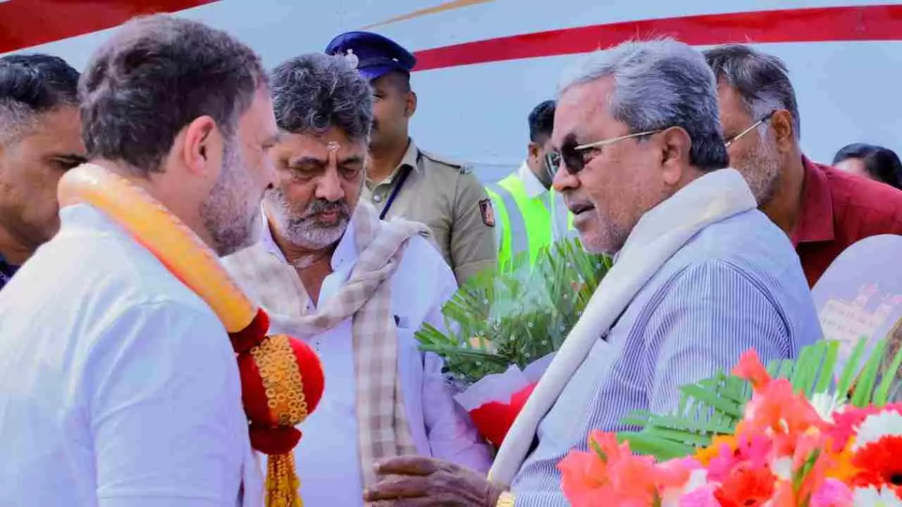 ಮೈಸೂರಿನಲ್ಲಿ ರಾಹುಲ್ ಗಾಂಧಿಗೆ ಸ್ವಾಗತ: ನಾಯಕತ್ವ ಬದಲಾವಣೆ ಚರ್ಚೆಯಿಲ್ಲ; ಡಿಕೆಶಿಗೆ ನಿರಾಸೆ