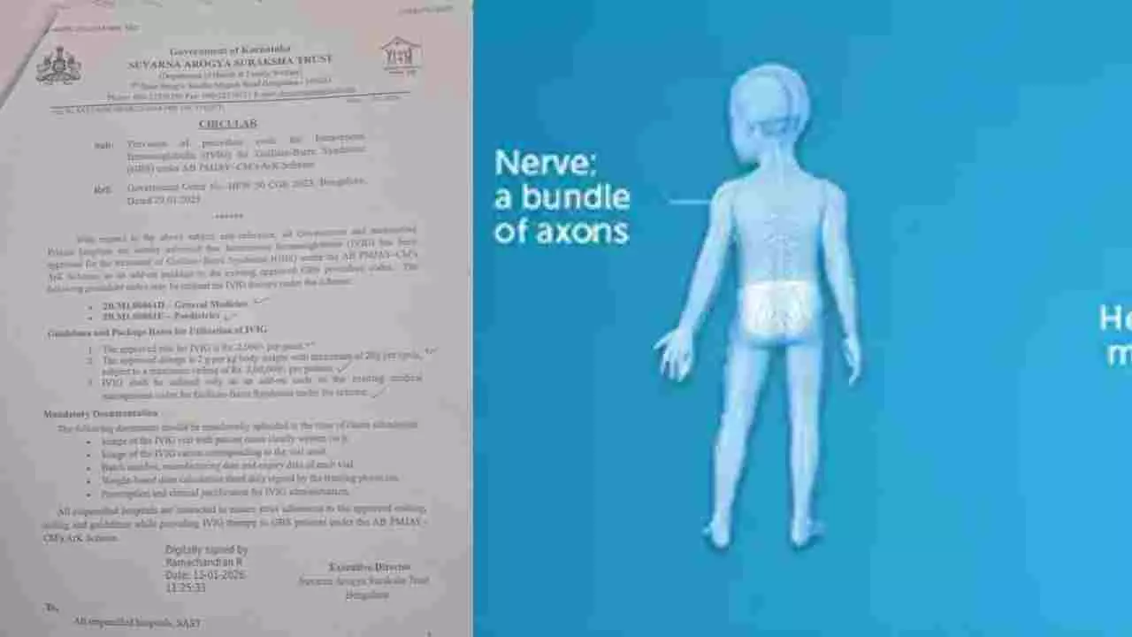 ರಾಜ್ಯದ ಜನಸಾಮಾನ್ಯರಿಗೆ ಮತ್ತು ಬಡ ವರ್ಗದ ರೋಗಿಗಳಿಗೆ ರಾಜ್ಯ ಸರ್ಕಾರವು ಆರೋಗ್ಯ ಕ್ಷೇತ್ರದಲ್ಲಿ ಮಹತ್ವದ ಸಮಾಧಾನಕರ ಸುದ್ದಿಯೊಂದನ್ನು ನೀಡಿದೆ. ಅತ್ಯಂತ ದುಬಾರಿ ವೆಚ್ಚದ ಚಿಕಿತ್ಸೆ ಎಂದು ಪರಿಗಣಿಸಲಾದ ‘ಗಿಲೆನ್-ಬಾರಿ ಸಿಂಡ್ರೋಮ್’ (GBS) ಎಂಬ ನರಮಂಡಲದ ಕಾಯಿಲೆಗೆ ಚಿಕಿತ್ಸೆ ಪಡೆಯುತ್ತಿರುವವರಿಗೆ ಇನ್ನು ಮುಂದೆ ಆಯುಷ್ಮಾನ್ ಭಾರತ್-ಆರೋಗ್ಯ ಕರ್ನಾಟಕ ಯೋಜನೆಯಡಿ ಉಚಿತವಾಗಿ ಚಿಕಿತ್ಸೆ ಲಭ್ಯವಾಗಲಿದೆ.