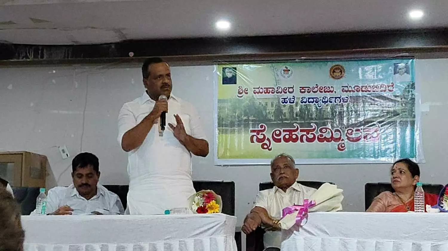ಬೆಂಗಳೂರಿನಲ್ಲಿ ಶನಿವಾರ(ಜ.24) ಆಯೋಜಿಸಲಾಗಿದ್ದ ಮೂಡಬಿದಿರೆ ಮಹಾವೀರ ಕಾಲೇಜಿನ ಹಳೆ ವಿದ್ಯಾರ್ಥಿಗಳ ಸ್ನೇಹ ಸಮ್ಮಿಲನ ಕಾರ್ಯಕ್ರಮದಲ್ಲಿ ಮಾತನಾಡಿದ ಅವರು, ತಮ್ಮ ವ್ಯಕ್ತಿತ್ವ ರೂಪಿಸುವಲ್ಲಿ ಕಾಲೇಜು ಯಾವ ರೀತಿ ಮಾರ್ಗದರ್ಶಿಯಾಯಿತು ಎಂದು ವಿವರಿಸಿದರು. ಕಾಲೇಜು ವಿದ್ಯಾರ್ಥಿಗಳಾಗಿದ್ದಾಗ ನಾವು ಸಾಕಷ್ಟು ಚಟುವಟಿಕೆಗಳಲ್ಲಿ ಪಾಲ್ಗೊಳ್ಳಲು ಪ್ರಾಧ್ಯಾಪಕರು ನಮಗೆ ಪ್ರೋತ್ಸಾಹ ನೀಡುತ್ತಿದ್ದರು. ನಮ್ಮೆಲ್ಲ ತಪ್ಪುಗಳನ್ನು ತಿದ್ದಿ ಅಗತ್ಯವಿದ್ದಾಗ ನಮ್ಮ ಪೋಷಕರನ್ನೂ ಕರೆಸಿ ಬುದ್ದಿ ಹೇಳಿದ್ದರಿಂದಲೇ ಸಮಾಜದಲ್ಲಿ ಈ ಸಾಧನೆಯೊಂದಿಗೆ ಗುರುತಿಸುವಂತಾಗಿದೆ ಎಂದರು.