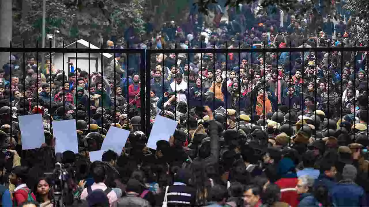 ಮಧ್ಯಾಹ್ನ 3:20 ರ ಸುಮಾರಿಗೆ ವಿದ್ಯಾರ್ಥಿಗಳು ಮುಖ್ಯ ದ್ವಾರದಿಂದ ಹೊರಬರಲು ಪ್ರಯತ್ನಿಸಿದಾಗ ಪೊಲೀಸರು ಹಾಕಿದ್ದ ಬ್ಯಾರಿಕೇಡ್ಗಳನ್ನು ಹಾನಿಗೊಳಿಸಲಾಯಿತು ಎಂದು ಹೇಳಲಾಗಿದೆ. ಈ ವೇಳೆ ಪರಿಸ್ಥಿತಿ ವಿಕೋಪಕ್ಕೆ ತಿರುಗಿದ್ದು, ವಿದ್ಯಾರ್ಥಿಗಳು ಬ್ಯಾನರ್, ಲಾಠಿ, ಬೂಟುಗಳನ್ನು ಎಸೆದಿದ್ದಲ್ಲದೆ ಪೊಲೀಸರಿಗೆ ಕಚ್ಚಿದ್ದಾರೆ ಎಂದು ದೆಹಲಿ ಪೊಲೀಸರು ಆರೋಪಿಸಿದ್ದಾರೆ.