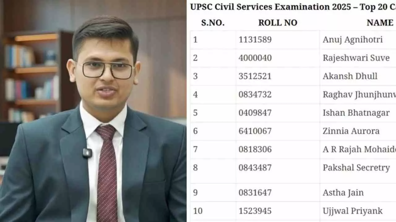 UPSC Results 2025: ಫಲಿತಾಂಶ ಪ್ರಕಟ: ರಾಜಸ್ಥಾನದ ಅನುಜ್ ಅಗ್ನಿಹೋತ್ರಿಗೆ ಪ್ರಥಮ ಸ್ಥಾನ