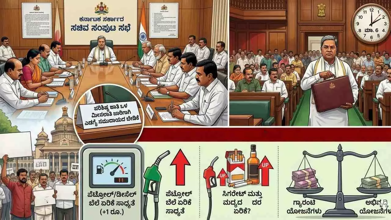 ಆರ್ಥಿಕ ಸಂಪನ್ಮೂಲ ಕ್ರೋಢೀಕರಣಕ್ಕಾಗಿ ಸರ್ಕಾರ ಬೆಲೆ ಏರಿಕೆಯ ಅಸ್ತ್ರವನ್ನು ಪ್ರಯೋಗಿಸುವ ಸಾಧ್ಯತೆಗಳು ಬಹುತೇಕ ನಿಚ್ಚಳವಾಗಿವೆ. ಬಜೆಟ್ನಲ್ಲಿ ಪೆಟ್ರೋಲ್ ಮತ್ತು ಡೀಸೆಲ್ ಮೇಲಿನ ಮಾರಾಟ ದರ ಅಥವಾ ಸೆಸ್ ಅನ್ನು ಪ್ರತಿ ಲೀಟರ್ಗೆ ಕನಿಷ್ಠ ಒಂದು ರೂಪಾಯಿಯಷ್ಟು ಹೆಚ್ಚಿಸುವ ಸಾಧ್ಯತೆಯಿದ್ದು, ಇದು ಜನಸಾಮಾನ್ಯರ ಆಕ್ರೋಶಕ್ಕೆ ಕಾರಣವಾಗುವ ಆತಂಕವೂ ಸರ್ಕಾರಕ್ಕಿದೆ. ಕೇವಲ ಇಂಧನ ಮಾತ್ರವಲ್ಲದೆ, ರಾಜ್ಯದ ಬೊಕ್ಕಸವನ್ನು ತುಂಬಿಸಲು ಸಿಗರೇಟ್ ಹಾಗೂ ಮದ್ಯದ ದರಗಳ ಮೇಲಿನ ಅಬಕಾರಿ ಸುಂಕವನ್ನು ಏರಿಕೆ ಮಾಡುವ ಘೋಷಣೆಯೂ ನಾಳೆಯ ಬಜೆಟ್ನಲ್ಲಿ ಹೊರಬೀಳುವ ನಿರೀಕ್ಷೆಯಿದೆ. ಗ್ಯಾರಂಟಿ ಯೋಜನೆಗಳಿಗೆ ದೊಡ್ಡ ಪ್ರಮಾಣದ ಹಣ ಮೀಸಲಿಡಬೇಕಾಗಿರುವುದರಿಂದ, ಬಜೆಟ್ ಅನ್ನು ಸರಿದೂಗಿಸಲು ಸರ್ಕಾರ ಜನಸಾಮಾನ್ಯರ ಮೇಲೆ ನೇರ ತೆರಿಗೆಯ ಹೊರೆ ಹಾಕಲಿದೆಯೇ ಎನ್ನುವ ಚರ್ಚೆ ಸಾರ್ವಜನಿಕ ವಲಯದಲ್ಲಿ ತೀವ್ರವಾಗಿದೆ.