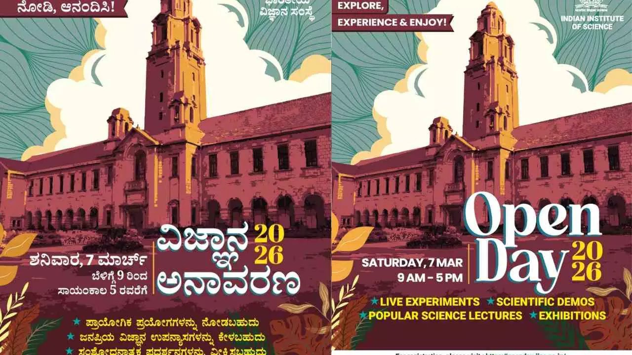 ಭಾರತೀಯ ವಿಜ್ಞಾನ ಸಂಸ್ಥೆ ಬೆಂಗಳೂರಿನ ಕ್ಯಾಂಪಸ್ಗೆ ಮಾರ್ಚ್ 7(ಶನಿವಾರ)ರಂದು ಮುಕ್ತ ಪ್ರವೇಶ ದೊರೆಯಲಿದೆ. ಅಂದು ಈ ವಿಶ್ವ ವಿಖ್ಯಾತ ಸಂಶೋಧನಾ ಸಂಸ್ಥೆ ತನ್ನ ವಾರ್ಷಿಕ ‘ಓಪನ್ ಡೇ’ ಆಯೋಜಿಸಿದ್ದು, ಬೆಳಗ್ಗೆ 9.00ರಿಂದ ಸಂಜೆ 5.00ರವರೆಗೆ ಸಾರ್ವಜನಿಕರಿಗೆ ಕ್ಯಾಂಪಸ್ಗೆ ಉಚಿತ ಪ್ರವೇಶ ನೀಡಲಿದೆ. ವಿದ್ಯಾರ್ಥಿಗಳು, ವಿಜ್ಞಾನ–ತಂತ್ರಜ್ಞಾನ ಆಸಕ್ತರು ಮತ್ತು ಸಾರ್ವಜನಿಕರು ಸಂಸ್ಥೆಯ ವಿವಿಧ ವಿಭಾಗಗಳು ಹಾಗೂ ಕೇಂದ್ರಗಳಲ್ಲಿ ನಡೆಯುವ ಸಂಶೋಧನಾ ಚಟುವಟಿಕೆಗಳನ್ನು ನೇರವಾಗಿ ನೋಡಲು, ಅನುಭವಿಸಲು ಈ ಕಾರ್ಯಕ್ರಮ ಅವಕಾಶ ನೀಡುತ್ತದೆ.