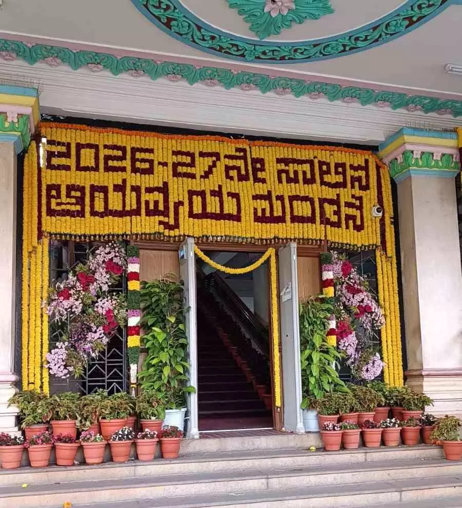 ಸಿಎಂ ಸಿದ್ದರಾಮಯ್ಯ ಮಂಡಿಸುತ್ತಿರುವ ದಾಖಲೆಯ 17ನೇ ಬಜೆಟ್ಗೆ ವಿಧಾನಸೌಧ ಸಿಂಗಾರಗೊಂಡಿದ್ದು, ಮುಖ್ಯದ್ವಾರದಲ್ಲಿ "2026-27ನೇ ಸಾಲಿನ ಆಯವ್ಯಯ ಮಂಡನೆ" ಎಂದು ಹೂವಿನಲ್ಲಿ ಅಲಂಕಾರಗೊಳಿಸಲಾಗಿದೆ.