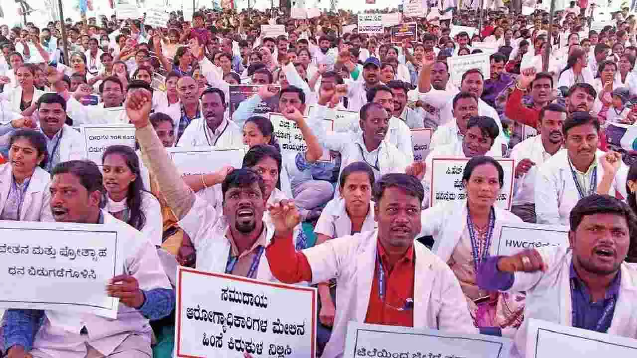 - ವೇತನ ಸಮಾನತೆ: ವೈದ್ಯಕೀಯ ಶಿಕ್ಷಣ ಇಲಾಖೆಯ ಮಾದರಿಯಲ್ಲೇ ಆರೋಗ್ಯ ಇಲಾಖೆಯ ವೈದ್ಯರು ಮತ್ತು ಸಿಬ್ಬಂದಿಗೂ ವೇತನ ನೀಡಬೇಕು.