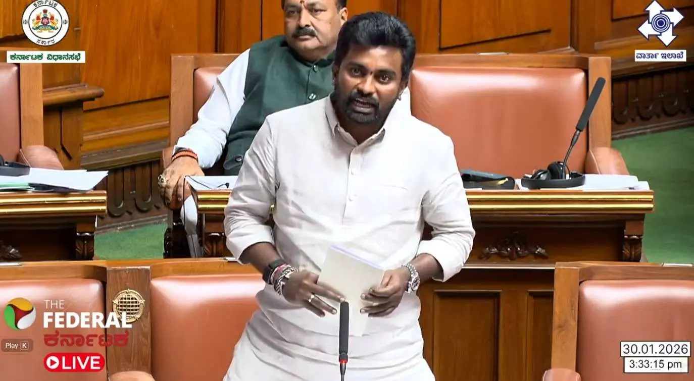 ವಿಧಾನಸಭೆಯಲ್ಲಿ ರಾಜ್ಯಪಾಲರ ವಂದನಾ ನಿರ್ಣಯದ ಮೇಲೆ ಮಾತನಾಡಿದ ಶಾಸಕ ಬಿ.ವೈ. ವಿಜಯೇಂದ್ರ ಅವರು ಕಾಂಗ್ರೆಸ್ ಸರ್ಕಾರದ ವಿರುದ್ಧ ತೀವ್ರ ವಾಗ್ದಾಳಿ ನಡೆಸುತ್ತಾ, ಗಾಂಧಿ ಮತ್ತು ಅಂಬೇಡ್ಕರ್ ಅವರ ಹೆಸರನ್ನು ಜಪಿಸುವ ಕಾಂಗ್ರೆಸ್ನ ವರ್ತನೆ 'ಭೂತದ ಬಾಯಲ್ಲಿ ಭಗವದ್ಗೀತೆ' ಬಂದಂತಿದೆ ಎಂದು ಲೇವಡಿ ಮಾಡಿದರು. ಒಂದು ಕಾಲದಲ್ಲಿ 415 ಸ್ಥಾನಗಳನ್ನು ಗೆಲ್ಲುತ್ತಿದ್ದ ಕಾಂಗ್ರೆಸ್ ಇಂದು 95 ಸ್ಥಾನಗಳಿಗೆ ಕುಸಿಯಲು ಬಡವರಿಗೆ ಹಾಗೂ ಗಾಂಧೀಜಿಯವರಿಗೆ ನೀಡಿದ 'ಮಕಮಲ್ ಟೋಪಿ' ಮತ್ತು ವಂಚನೆಯೇ ಕಾರಣ ಎಂದು ಟೀಕಿಸಿದ ಅವರು, ರಾಜ್ಯದ ತೆರಿಗೆ ಹಣವನ್ನು ಕೇಂದ್ರ ಲೂಟಿ ಮಾಡುತ್ತಿದೆ ಎಂಬ ಆಡಳಿತ ಪಕ್ಷದ ಆರೋಪವನ್ನು 'ಅರ್ಥಹೀನ' ಎಂದು ತಳ್ಳಿಹಾಕಿದರು.