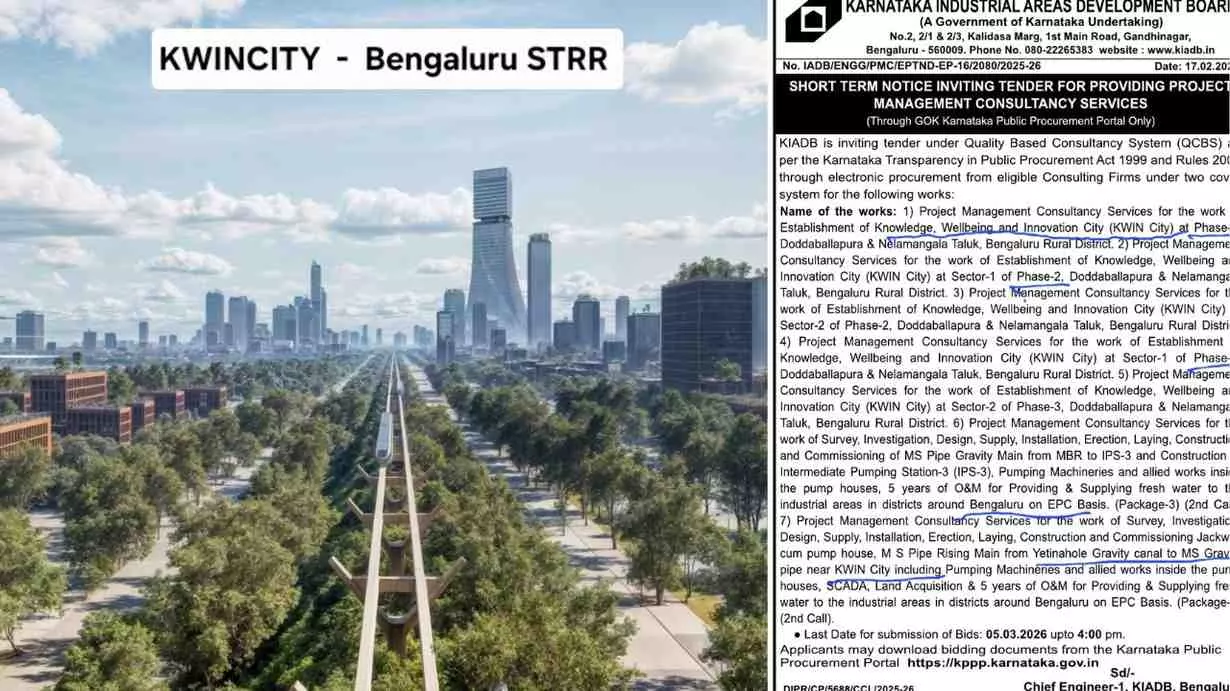 ರಾಜ್ಯ ರಾಜಧಾನಿಯ ದಟ್ಟಣೆಯನ್ನು ಕಡಿಮೆ ಮಾಡುವ ಉದ್ದೇಶದಿಂದ ಸ್ಯಾಟಲೈಟ್ ಟೌನ್ ರಿಂಗ್ ರೋಡ್ ಉದ್ದಕ್ಕೂ ನಿರ್ಮಿಸಲು ಉದ್ದೇಶಿಸಿರುವ ಮಹತ್ವಾಕಾಂಕ್ಷೆಯ 'ಕ್ವಿನ್ ಸಿಟಿ' (KWIN City - Knowledge, Wellbeing, Innovation, and Nature City) ಯೋಜನೆ ಈಗ ಅನುಷ್ಠಾನದ ಹಂತಕ್ಕೆ ತಲುಪಿದೆ. ಸುಮಾರು 5,800 ಎಕರೆ ಪ್ರದೇಶದಲ್ಲಿ ನಿರ್ಮಾಣವಾಗಲಿರುವ ಈ ಸುಸ್ಥಿರ ನಗರದ ಅಭಿವೃದ್ಧಿಗೆ ಕರ್ನಾಟಕ ಕೈಗಾರಿಕಾ ಪ್ರದೇಶ ಅಭಿವೃದ್ಧಿ ಮಂಡಳಿ ಫೆಬ್ರವರಿ 17ರಂದು ಟೆಂಡರ್ ಆಹ್ವಾನಿಸಿದೆ.