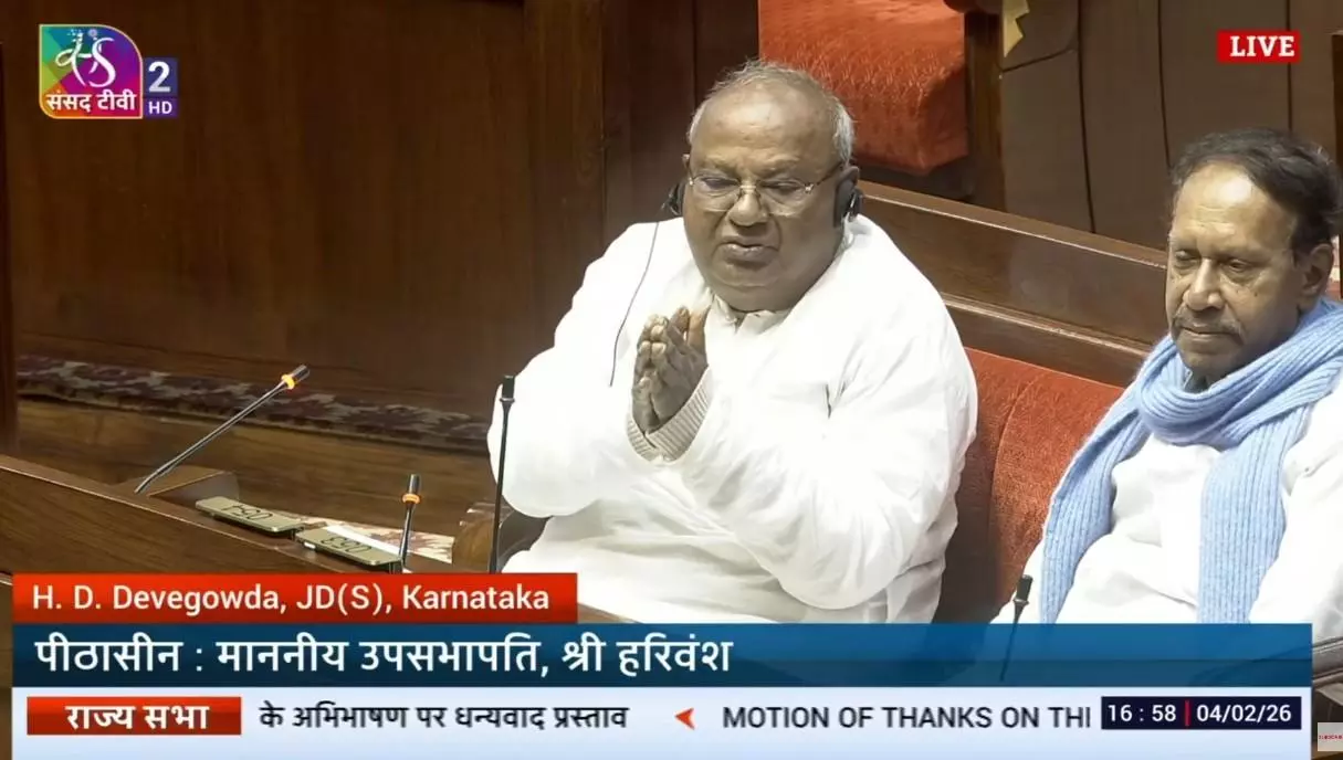 ರಾಜ್ಯಸಭೆಯಲ್ಲಿ ಮಾಜಿ ಪ್ರಧಾನಿ ಎಚ್.ಡಿ. ದೇವೇಗೌಡ ಮಾತನಾಡಿದರು.