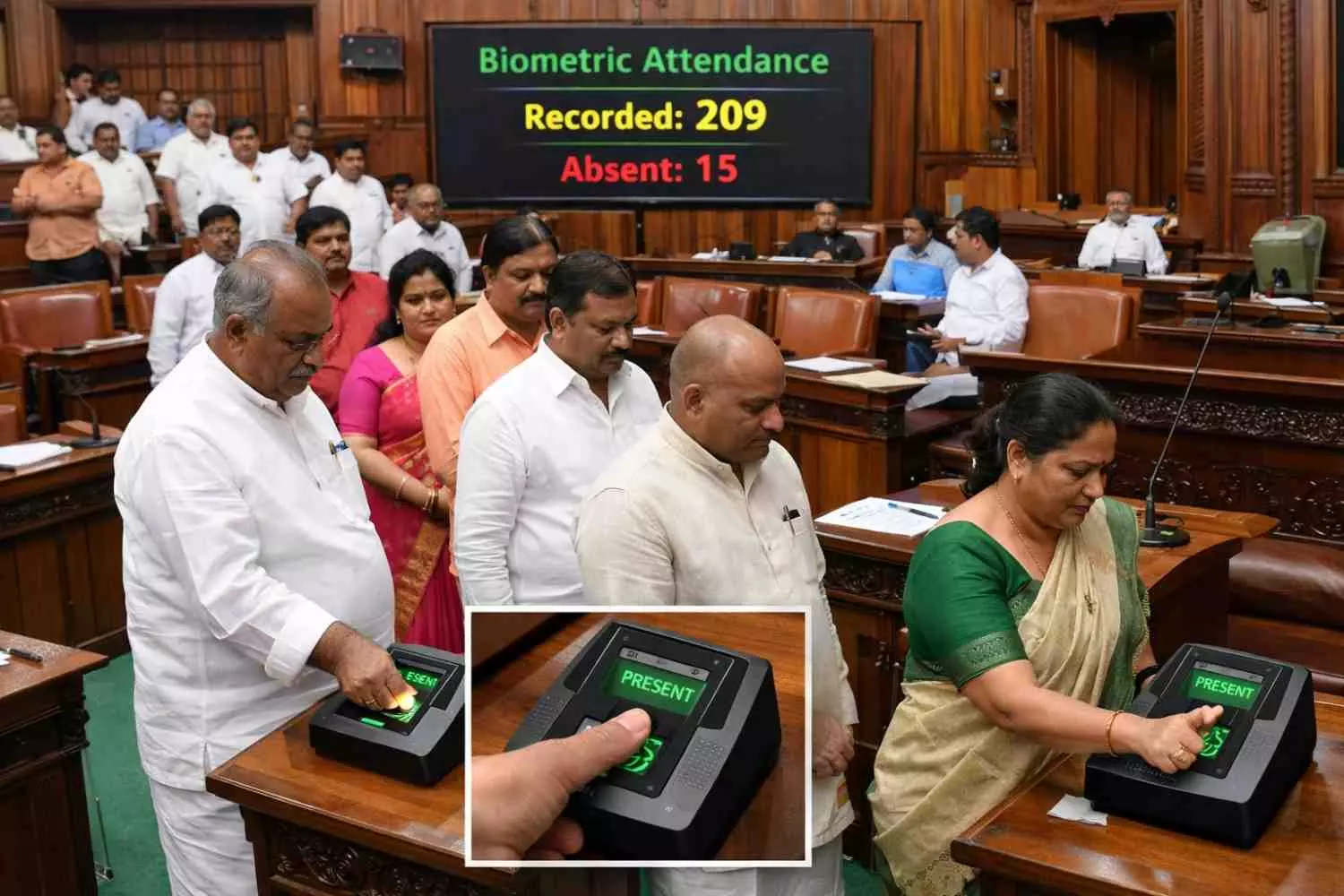 ವಿಧಾನಸಭೆಯ ಪ್ರವೇಶ ಮತ್ತು ನಿರ್ಗಮನ ದ್ವಾರಗಳಲ್ಲಿ ಬಯೋ-ಮೆಟ್ರಿಕ್ ಯಂತ್ರಗಳನ್ನು ಅಳವಡಿಸಲಾಗುತ್ತದೆ. ಶಾಸಕರು ಸದನವನ್ನು ಪ್ರವೇಶಿಸುವಾಗ ಮತ್ತು ನಿರ್ಗಮಿಸುವಾಗ ತಮ್ಮ ಬೆರಳಚ್ಚು ಹಾಜರಾತಿಯನ್ನು ಬಯೋಮೆಟ್ರಿಕ್ ಯುಂತ್ರದಲ್ಲಿ ದಾಖಲಿಸುವುದು ಅನಿವಾರ್ಯವಾಗಲಿದೆ. ಇದರಿಂದ ಶಾಸಕರು ಸದನದ ಕಲಾಪದಲ್ಲಿ ಎಷ್ಟು ಹೊತ್ತು ಪಾಲ್ಗೊಂಡಿದ್ದರು ಎಂಬುದು ಅಧಿಕೃತವಾಗಿ ಸ್ಪೀಕರ್ ಕಚೇರಿ ಕೈಸೇರಲಿದೆ.