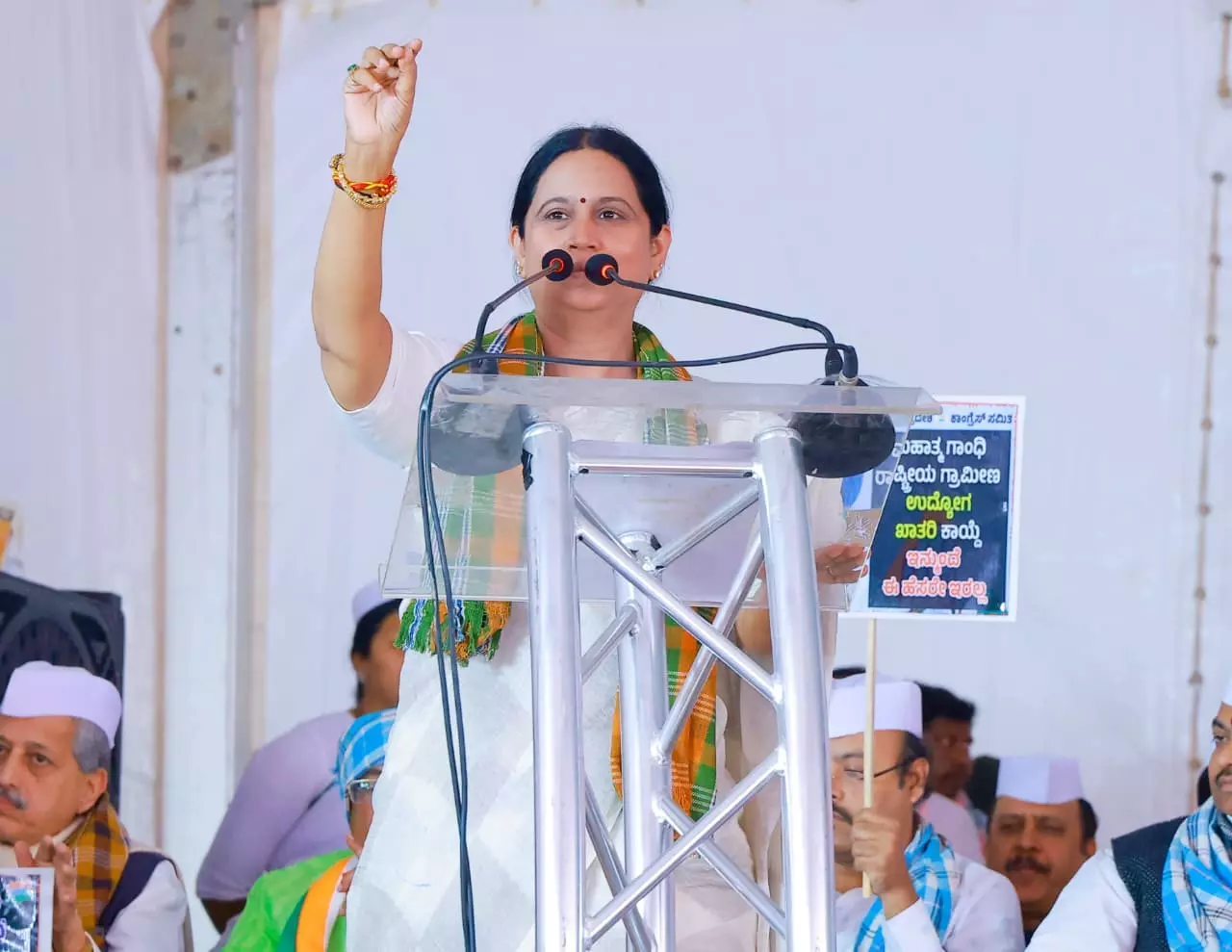 ಬೆಂಗಳೂರಿನ ಫ್ರೀಡಂ ಪಾರ್ಕ್ನಲ್ಲಿ ನಡೆದ "ನರೇಗಾ ಬಚಾವ್ ಸಂಗ್ರಾಮ್" ಪ್ರತಿಭಟನೆಯಲ್ಲಿ ಸಚಿವೆ ಲಕ್ಷ್ಮೀ ಹೆಬ್ಬಾಳಕರ್ ಅವರು ಕೇಂದ್ರ ಸರ್ಕಾರದ ವಿರುದ್ಧ ತೀವ್ರ ವಾಗ್ದಾಳಿ ನಡೆಸಿದರು.
