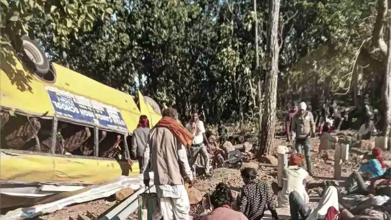 ಛತ್ತೀಸ್ಗಢದ ಬಲರಾಮ್ಪುರ ಜಿಲ್ಲೆಯಿಂದ ಜಾರ್ಖಂಡ್ನ ಲಾತೇಹರ್ಗೆ ಮದುವೆ ದಿಬ್ಬಣದ ಬಸ್ ತೆರಳುತ್ತಿತ್ತು. ಕಡಿದಾದ ತಿರುವುಗಳಿಂದ ಕೂಡಿದ ಒರ್ಸಾ ಬಂಗ್ಲಾಧರಾ ಕಣಿವೆಯಲ್ಲಿ ಚಾಲಕನ ನಿಯಂತ್ರಣ ತಪ್ಪಿ ಬಸ್ ಪಲ್ಟಿಯಾಗಿದೆ. ಸ್ಥಳದಲ್ಲೇ ಐವರು ಸಾವನ್ನಪ್ಪಿದ್ದು, ಅವರಲ್ಲಿ ನಾಲ್ವರು ಮಹಿಳೆಯರಾಗಿದ್ದರು ಎಂದು ಪೊಲೀಸರು ತಿಳಿಸಿದ್ದಾರೆ.