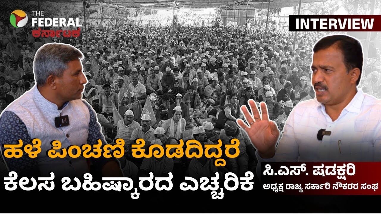 ಹಳೆಪಿಂಚಣಿ(OPS)ವ್ಯವಸ್ಥೆಯನ್ನು ಜಾರಿಗೆ ತರುವ ನಿಟ್ಟಿನಲ್ಲಿ ರಾಜ್ಯ ಸರ್ಕಾರಿ ನೌಕರರ ಸಂಘ ದೊಡ್ಡ ಮಟ್ಟದ ಹೋರಾಟಕ್ಕೆ ಮುಂದಾಗಿದೆ. ಹೊಸ ಪಿಂಚಣಿ (NPS) ಬದಲು ಹಳೆ ಪಿಂಚಣಿ (OPS) ಜಾರಿ ಮಾಡದಿದ್ದರೆ ಸರ್ಕಾರಿ ನೌಕರರು ಪೆನ್ ಡೌನ್ (pendown)ಮಾಡಿ ಕೆಲಸ ಬಹಿಷ್ಕರಿಸಿ ಹೋರಾಟ ಮಾಡುವ ಹಂತಕ್ಕೆ ಹೋಗುವ ಸಾಧ್ಯತೆ ಇದೆ. ಹೋರಾಟದ ಬಗ್ಗೆ ಸರ್ಕಾರಿ ನೌಕರರ ಸಂಘದ ರಾಜ್ಯಾಧ್ಯಕ್ಷ ಸಿ.ಎಸ್.ಷಡಕ್ಷರಿ ಅವರು 'ದ ಫೆಡರಲ್ ಕರ್ನಾಟಕ'ದ ಸಂದರ್ಶನದಲ್ಲಿ ಮಾತನಾಡಿ ಮಾಹಿತಿ ನೀಡಿದ್ದಾರೆ. ಹಾಲಿ ಶಿಕ್ಷಕರಿಗೆ TET ಪರೀಕ್ಷೆ ಕಡ್ಡಾಯ, ಸರ್ಕಾರಿ ನೌಕರರ ಮೇಲೆ ಹಲ್ಲೆ ಹಾಗು ನಿಂದನೆ ಸೇರಿದಂತೆ ಹಲವು ವಿಚಾರಗಳನ್ನು ಮುಕ್ತವಾಗಿ ಮಾತನಾಡಿದ್ದಾರೆ. ಷಡಕ್ಷರಿ ಅವರ ಸಂದರ್ಶನದ ಸಂಪೂರ್ಣ ಮಾಹಿತಿಗೆ ಈ ಸಂದರ್ಶನ ನೋಡಿ.