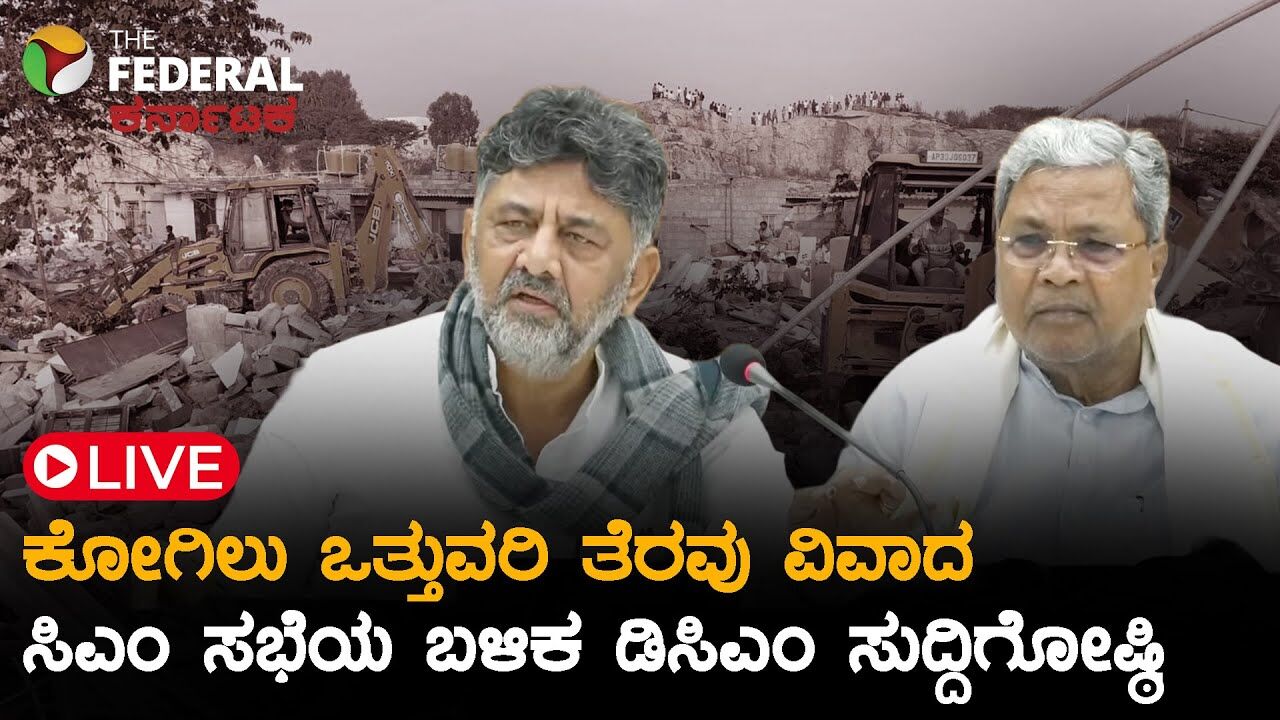ಯಲಹಂಕದ ಕೋಗಿಲು ಬಡಾವಣೆ (Kogilu Layout) ಒತ್ತುವರಿ ತೆರವು ಪ್ರಕರಣಕ್ಕೆ ಸಂಬಂಧಿಸಿದಂತೆ ಮುಖ್ಯಮಂತ್ರಿ ಸಿದ್ದರಾಮಯ್ಯ ಅವರ ನೇತೃತ್ವದಲ್ಲಿ ನಡೆದ ಮಹತ್ವದ ಸಭೆಯ ನಂತರದ ಪತ್ರಿಕಾಗೋಷ್ಠಿಯ ನೇರ ಪ್ರಸಾರ. ಸಭೆಯಲ್ಲಿ ಕೋಗಿಲು ಬಡಾವಣೆಯ ಸಂತ್ರಸ್ತ ಕುಟುಂಬಗಳಿಗೆ ಪರ್ಯಾಯವಾಗಿ ಮನೆಗಳನ್ನು ನೀಡಲು ನಿರ್ಧರಿಸಲಾಗಿದೆ. ಈ ಕುರಿತು ಸರ್ಕಾರದ ಅಧಿಕೃತ ಘೋಷಣೆ ಮತ್ತು ವಿವರಗಳನ್ನು ವೀಕ್ಷಿಸಿ.