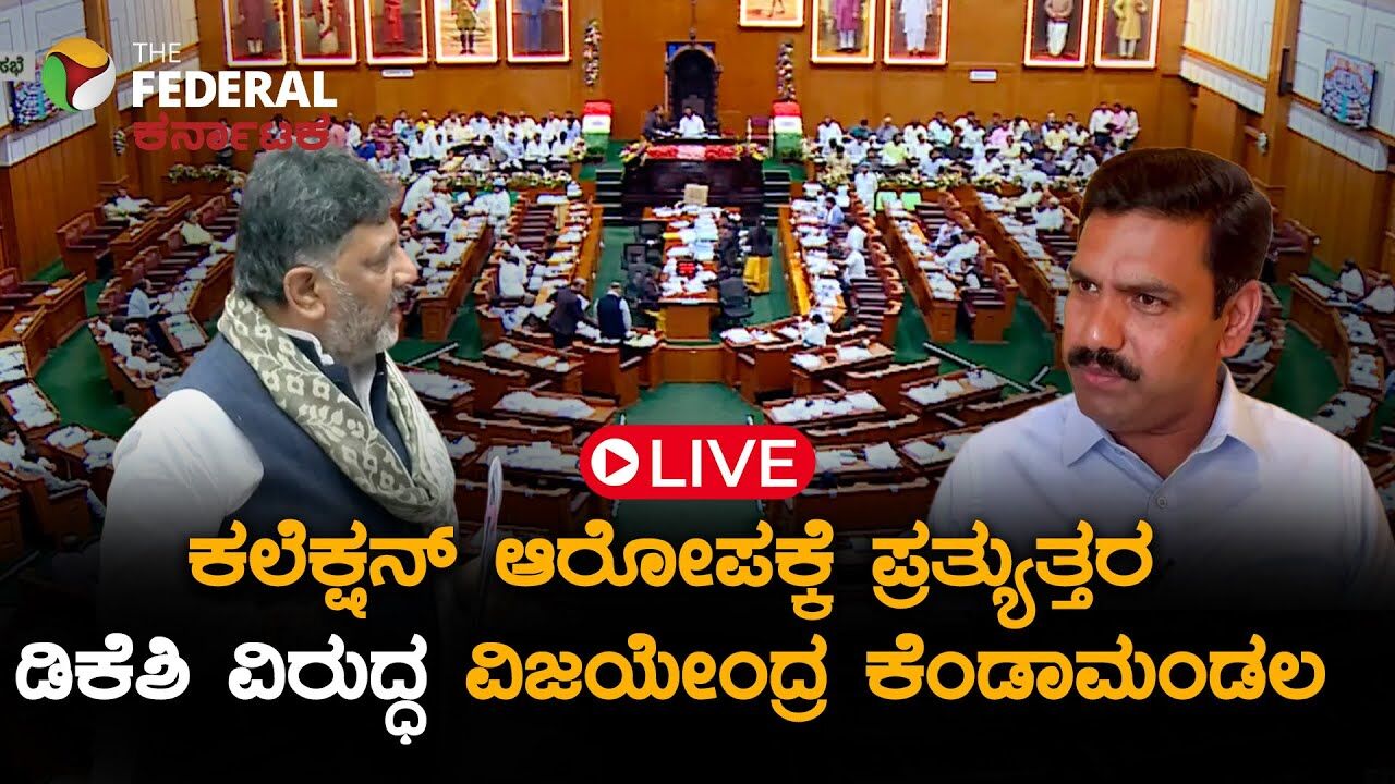 ತಮ್ಮ ವಿರುದ್ಧ ಡಿಸಿಎಂ ಡಿ.ಕೆ. ಶಿವಕುಮಾರ್ ಮಾಡಿದ್ದ ಟೀಕೆಗಳಿಗೆ ಬಿಜೆಪಿ ರಾಜ್ಯಾಧ್ಯಕ್ಷ ಬಿ.ವೈ. ವಿಜಯೇಂದ್ರ ಸುವರ್ಣಸೌಧದಲ್ಲಿ ನಡೆದ ಸುದ್ದಿಗೋಷ್ಠಿಯಲ್ಲಿ ತೀಕ್ಷ್ಣವಾಗಿ ತಿರುಗೇಟು ನೀಡಿದ್ದಾರೆ. ಡಿ.ಕೆ. ಶಿವಕುಮಾರ್ ಅವರನ್ನು "ಭ್ರಷ್ಟಾಚಾರದ ಪಿತಾಮಹ" ಎಂದು ಜರಿದಿರುವ ವಿಜಯೇಂದ್ರ, "ನನ್ನ ಬಗ್ಗೆ ಮಾತನಾಡುವ ನೈತಿಕತೆ ಮತ್ತು ಯೋಗ್ಯತೆ ಡಿ.ಕೆ. ಶಿವಕುಮಾರ್ ಅವರಿಗಿಲ್ಲ" ಎಂದು ವಾಗ್ದಾಳಿ ನಡೆಸಿದ್ದಾರೆ. ಇವರಿಬ್ಬರ ನಡುವಿನ ರಾಜಕೀಯ ಜಟಾಪಟಿಯ ಸಂಪೂರ್ಣ ವಿವರ ಇಲ್ಲಿದೆ.