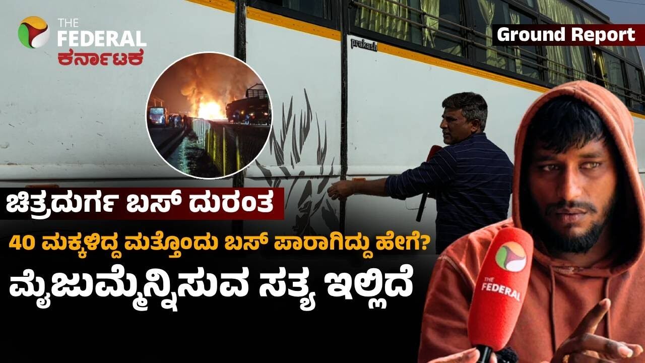 ಚಿತ್ರದುರ್ಗದ ಹಿರಿಯೂರು ಬಳಿ ನಡೆದ ಭೀಕರ ಬಸ್ ಅಪಘಾತದಲ್ಲಿ 40ಕ್ಕೂ ಹೆಚ್ಚು ಶಾಲಾ ಮಕ್ಕಳಿದ್ದ ಬಸ್ ಪವಾಡಸದೃಶವಾಗಿ ಪಾರಾಗಿದೆ. ಬೆಂಕಿಗಾಹುತಿಯಾದ ಬಸ್ನ ಹಿಂದೆಯೇ ಬರುತ್ತಿದ್ದ ಶಾಲಾ ಬಸ್ ಚಾಲಕ ಸಚಿನ್ ಅವರ ಸಮಯಪ್ರಜ್ಞೆಯಿಂದ ದೊಡ್ಡ ಅನಾಹುತ ತಪ್ಪಿದೆ. ಅಪಘಾತ ಹೇಗಾಯ್ತು? ಕಣ್ಣಾರೆ ಕಂಡ ಆ ಚಾಲಕ ಹೇಳಿದ್ದೇನು? ಆ ರೋಚಕ ಕಥೆ ಇಲ್ಲಿದೆ ನೋಡಿ.