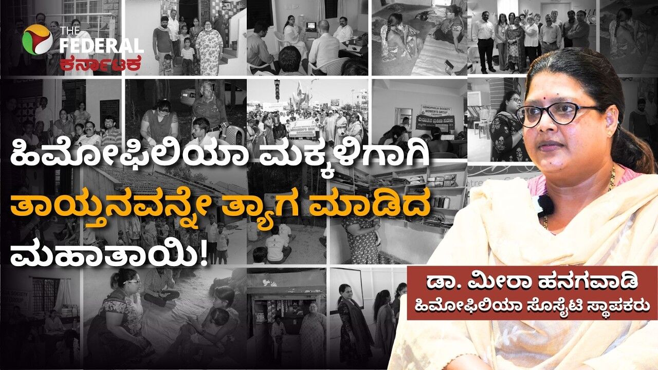 ವಿಶ್ವ ಮಹಿಳಾ ದಿನಾಚರಣೆಯ ವಿಶೇಷ ಸಂದರ್ಭದಲ್ಲಿ 'ದ ಫೆಡರಲ್ ಕರ್ನಾಟಕ' ಹಮ್ಮಿಕೊಂಡಿರುವ ವಿಶೇಷ ಸಂದರ್ಶನವಿದು. ರಕ್ತ ಹೆಪ್ಪುಗಟ್ಟದ ಕಠಿಣ ಕಾಯಿಲೆಯಾದ 'ಹಿಮೋಫಿಲಿಯಾ'ದಿಂದ ಬಳಲುತ್ತಿರುವ ಬಡ ಮಕ್ಕಳು ಮತ್ತು ಅವರ ತಾಯಂದಿರ ಬದುಕಿನಲ್ಲಿ ಬೆಳಕಾಗಿರುವ ಡಾ. ಮೀರಾ ಹನಗವಾಡಿ ಅವರ ಬದುಕಿನ ಯಶೋಗಾಥೆ ನಿಮ್ಮ ಮುಂದೆ. ಈ ಮಕ್ಕಳಿಗೆ ಉಚಿತ ಚಿಕಿತ್ಸೆ ನೀಡುವುದಷ್ಟೇ ಅಲ್ಲದೆ, ಮಾನಸಿಕವಾಗಿ ಕುಗ್ಗಿರುವ ಅವರ ತಾಯಂದಿರಿಗೆ ಧೈರ್ಯ ತುಂಬುವ ಕೆಲಸವನ್ನು ಡಾ. ಮೀರಾ ಮಾಡುತ್ತಿದ್ದಾರೆ. ಅಚ್ಚರಿಯ ವಿಷಯವೆಂದರೆ, ಈ ಹಿಮೋಫಿಲಿಯಾ ಮಕ್ಕಳನ್ನೇ ತನ್ನ ಸ್ವಂತ ಮಕ್ಕಳೆಂದು ಭಾವಿಸಿರುವ ಇವರು, ಅವರಿಗಾಗಿ ತಾವು ಮಗು ಮಾಡಿಕೊಳ್ಳದಿರುವ ಅಪ್ರತಿಮ ನಿರ್ಧಾರ ಕೈಗೊಂಡಿದ್ದಾರೆ. ಅವರ ಈ ಅಸಾಮಾನ್ಯ ತ್ಯಾಗ ಮತ್ತು ಸೇವೆಯ ಕುರಿತಾದ ಸಂಪೂರ್ಣ ಮಾತುಗಳನ್ನು ಈ ವಿಡಿಯೋದಲ್ಲಿ ವೀಕ್ಷಿಸಿ.